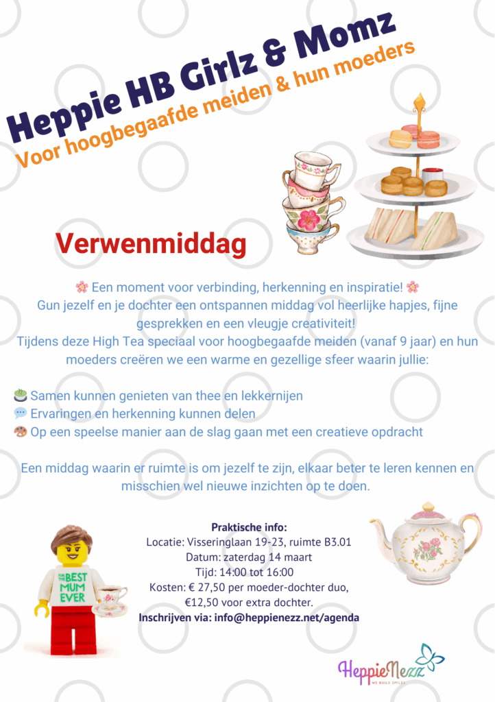 Tieners met (vermoedelijke) hoogbegaafdheid lopen vaak tegen unieke uitdagingen aan. Ze voelen zich niet altijd begrepen, zoeken meer uitdaging of worstelen met hun zelfvertrouwen. Bij Heppie HB Teenz bieden we een inspirerende, veilige en stimulerende omgeving waarin tieners hun talenten kunnen ontdekken en ontwikkelen. Door middel van LEGO®, creativiteit en ervaringsgericht leren versterken we hun zelfvertrouwen, sociale vaardigheden en probleemoplossend vermogen.